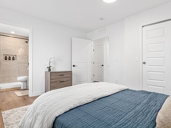 This modern main-level unit is designed for comfort and convenience. Each private bedroom comes fully furnished with upgraded bedding, a 4K Smart TV, desk, and secure digital keypad lock. The shared living room features a 65" electronically folding Smart TV, creating a cozy space to relax or unwind with housemates. The kitchen is equipped with brand-new stainless steel appliances, quartz countertops, and all cookware and utensils provided, making meal prep easy. Bathrooms are fresh and modern one bedroom includes a private en-suite bath, while the other two share a spacious, well-kept bathroom. Additional highlights include in-unit washer and dryer, high-speed Wi-Fi, and a fresh-air ventilation system for a clean, healthy living environment.
