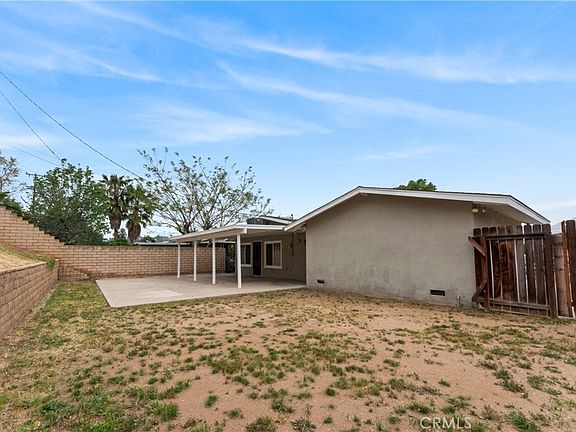 Three bed, two bath home in a quiet, sunny neighborhood with RV Parking on side of front drive. Spacious great room and kitchen with lots of cabinet space for storage. Brand new stainless steel appliances. One bathroom with a walk-in shower, the other with a tub and shower, newer vanities. Clean dark vinyl flooring throughout. Ceiling fans in each bedroom. Spacious yard with a green lawn and patio with patio cover. Newer HVAC and blinds on the windows. Property is enclosed with a lockable gate and fence. Beautiful views of Mount Rubidoux and surrounding hills. No HOA and low taxes.