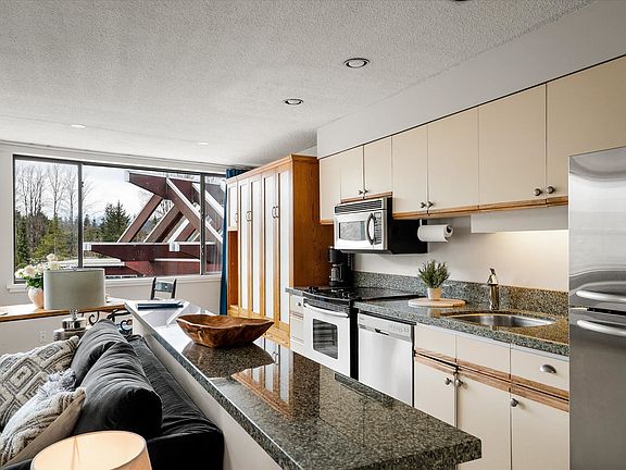 Location! Location! Location! Windwhistle is one of the very limited Phase I properties in the Whistler village center area. It is steps to Whistler Gondola and all the shops and restaurants. A grocery store and a liquor store are in the area which makes your Whistler life easy. Unit 301 has a very functional layout. At 850 sqft, this one-bedroom unit has space for a murphy bed in the living area, and a pull-out sofa bed, which can comfortably accommodate up to 6 people as a two-bedroom unit. The wrap-around windows provide a variety of views of the village and mountains and bring an abundance of natural light. A car might not be necessary as this location is within short walking distance to the Whistler bus loop. This unit is absolutely a great revenue generator you should not let go.