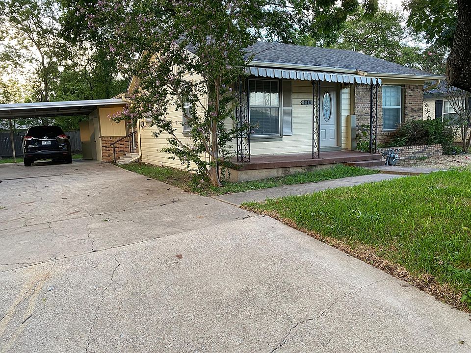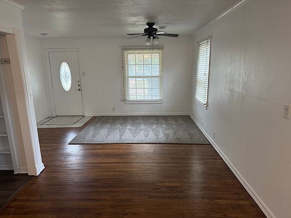 Home has 2 nice-sized bedrooms and 2 bathrooms. Master bedroom is large and has lots of storage. Second bedroom is a good size with a nice closet. A washer and dryer connection is right outside the side door. There are plenty of nice trees in the front and back. Lawn care is provided.
