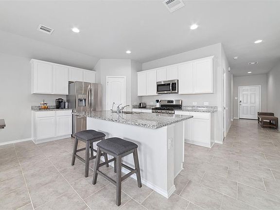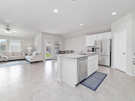 Beautifully maintained, 4 bed 2 bath home located on a cul-de-sac in the desirable Ventana Lakes neighborhood. This energy efficient home is the upgraded 1880sqft floor plan - includes tile throughout (carpet in bedrooms), white kitchen cabinets, black/white countertops, in-ground sprinkler system, gutters, and 2in blinds. Upgrades include tongue & groove front entry, cabinet and shelving in primary bath, extra shelving in primary closet, cabinets in laundry room, and attic space above garage floored off for storage. Home includes tankless insta-hot water heater, smart home technology, video doorbell, and covered patio! Community amenities include multiple pools, splash pad, trails, picnic area, club house, & much more! Minutes from 99 and I-10, shops & restaurants, Katy Mills & Typhoon Lagoon! Zoned to acclaimed Katy ISD & the reigning 5A Division 1 football state champion Paetow HS. With all the upgrades and amenities, you don't want to miss this one!