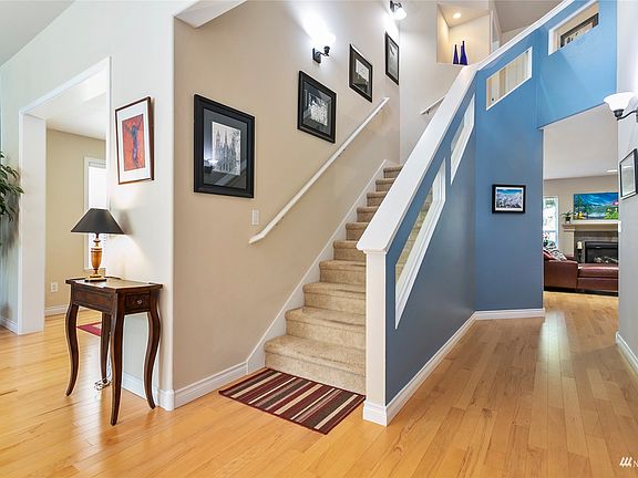 Quality Built Northwest Style Home on quiet cul-de-sac at the top of Barkley Drive. Close to restaurants, movie theatre, Bellingham Library, shopping, parks, and trails. Gorgeous remodeled primary bath with granite countertops, tiled shower, and jetted tub. Formal dining room. Beautiful German Beech hardwood floors through-out. Newer granite kitchen countertops, plenty of storage, stainless steel appliances. Family room off kitchen with gas fireplace. Nothing has been overlooked. Newer: Trex deck, furnace and heat pump, water heater, central vacuum, surround sound wiring. Mature Landscaping with raised beds, fenced backyard. Beautiful private view of the “green space” in front. Wired Security system. American Home Shield Home Warranty