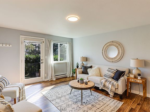 This lovely turn-key unit at Sage Condominiums has a private porch entry w/views. Enter a spacious, light-filled living room naturally flowing to the dining room & kitchen. The primary bedroom has views of Mount Rainier, and the in-unit laundry is large enough for multipurpose space. Also a free shared laundry room. New flooring in the living room, bedroom, and bath. This quiet and private boutique building has 14 units, no rental cap, is pet friendly, and has a well-managed HOA with low dues. The location is ideal—on a quiet tree-lined street with easy bus access, steps from BF Day park, and walkable to cafes, restaurants, and shops in both Fremont and Wallingford. Easy access to downtown, Hwy 99, Woodland Park Zoo, UW, and Lake Union.