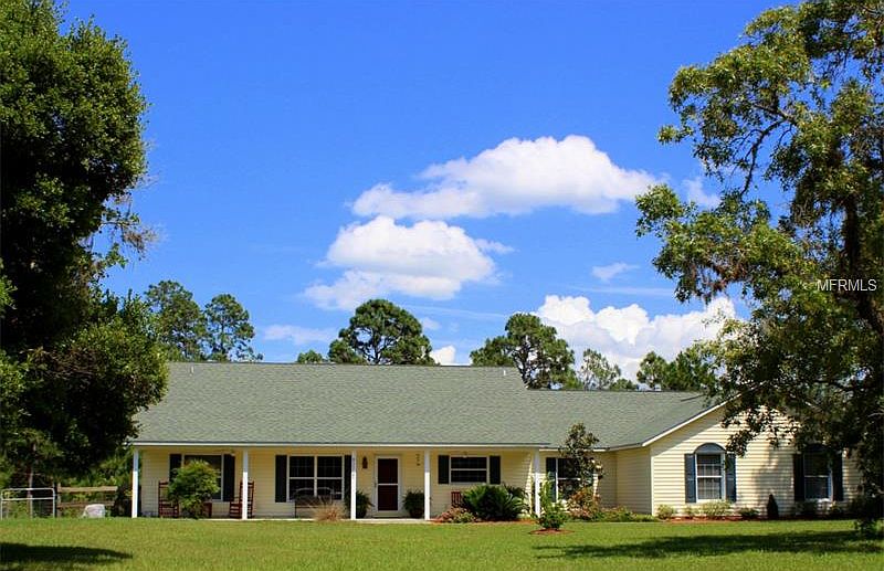 Unique home on one acre in Royal Trails Subdivision, no rear neighbors, home backs up to State Forest. The home has an open floor plan, front porch and back enclosed screened in porch. The kitchen features three ovens, an Island with granite counter tops. The home has a pantry, a separate utility room and an office leading to the back screened in porch. Property is all fenced, you may park your RV and boat. (BUILDING 22X25 WITH 10X20 PORCH) The zoning allows two horses per acre. The community has a playground, park and screened pavilion with many activities throughout the year.