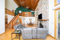 Surrounded by treesThoughtful storageCustom woodworkExpansive three-level homeSoaring ceilingsSpacious primary bedroomWalls of windows