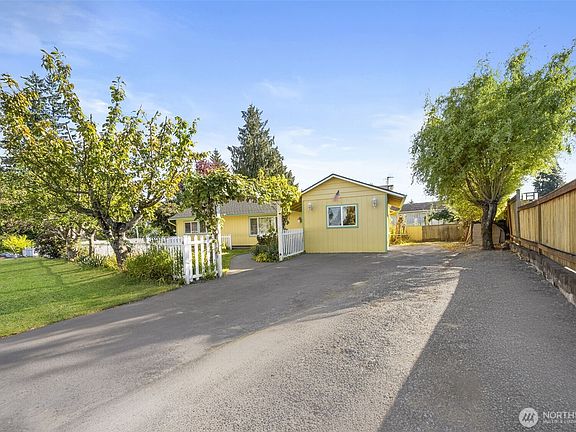 Remodeled, lovingly restored 4 spacious bedroom rambler, perfectly proportioned. Show casing natural lighting with laminate hardwood flooring, solar skylight accent, newer double pane vinyl windows. Grand sized bonus room/family room with wood stove. Bright updated kitchen with stainless steel appliances and solar tub skylight. Discover expansive backyard with a wooden deck ideal for outdoor entertaining. Don't miss the work bench/space in the back, could be a work shop or a storage building. On a shy fourth level acre lot just a few steps across the street to a city family park! Easy commute to Seattle! RV parking! Charming picket fenced frontage gives a doll house mystique. Shows bright and updated.