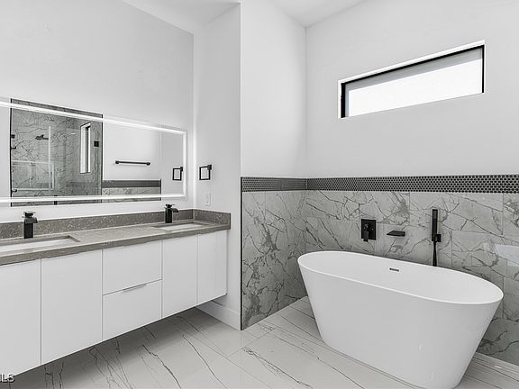 Extended lanaiSleek finishesFour bedroomsQuartz countertopsFloating modern vanitiesLed light mirrorsPorcelain tile flooring