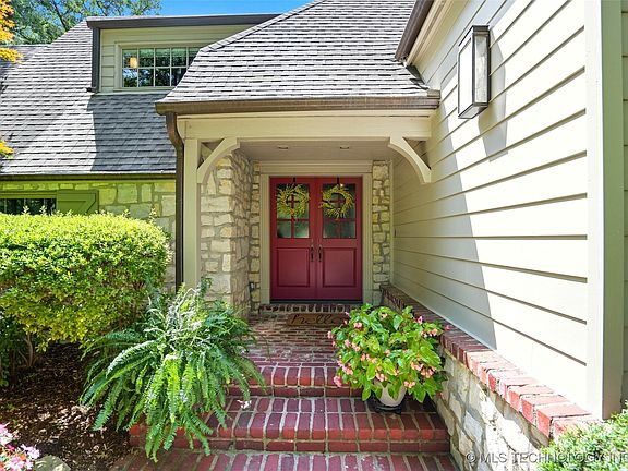 Unique Custom Jack Arnold Home Nestled In One Of Tulsa's Finest Gated Neighborhoods. This spectacular home sits on a cul-de-sac & has a park like setting including a terraced back porch, expansive yard, lush landscaping, and a screened-in grill and garden house in backyard. Gated driveway. Light and open, timeless floor plan with a large vaulted family room on the main level, separate office, beautiful beverage bar, formal dining room with pass through to kitchen, and vaulted living room. Downstairs features entry from the garage, wine cellar, and home gym or office space. Gorgeous Primary Suite. Upstairs features three bedrooms and two full baths-- one could be a game room! Truly One Of A Kind!