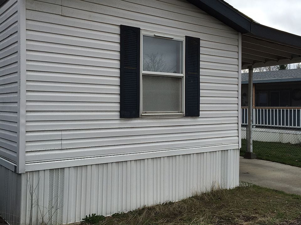 Great low maintenance living, light and bright inside, 2 bedroom, 1 bath, large covered patio, carport and additional off street parking, 10'-6' outdoor storage, quite neighborhood. Newer gas furnace and on-demand hot water heater. Close to school bus stop, new Mead schools & large sports facility, shopping, restaurants. Affordable lot rent. Little to no shoveling.