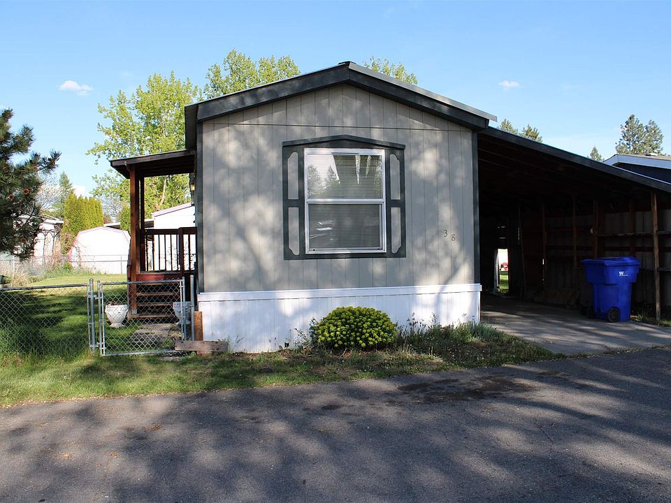 Welcome to a great space in the Mead school district! This 2 bedroom 2 bath Mobile home features an open concept with a large living room, open kitchen with generous cupboards and storage, room for dining table plus eat-in bar. Primary suite has walk-in closet and full bathroom with storage. Newer washer and dryer, new furnace, new roof and new siding. Also a large covered carport with metal roof. A great fenced in yard, pets are allowed! Both front and back covered decks for enjoying any kind of weather.