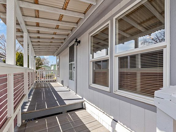 Beautiful home located in a quiet community away from the rush but conveniently located in Mead. This well-cared for double-wide manufactured home has had continuous improvements. New roof installed 3 years ago, fresh paint inside and out, newer gas furnace, and newer tankless hot water heater. Open living space with skylight, cathedral ceilings and tons of natural light. Kitchen features plenty of cabinets for storage and newer refrigerator & stove/range. Spacious primary suite with walk-in closet and attached bathroom with newer glass shower. Two bedrooms share the updated guest bathroom with newer vanity, flooring, & garden tub. Outside enjoy the park-like landscaping, the fertile and ready garden, covered patio, deck, carport and two storage sheds.