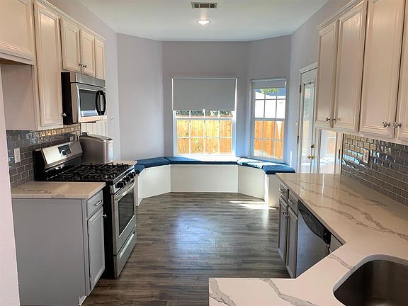 Charming 3 bedroom 2 bathroom garden home with a white picket fence. Property overlooks a beautiful park with lots of trees, park benches and a gazebo. Kitchen features marble counters, white cabinets, custom tile, and an attached dining area with built in bench seating. Private upstairs master suite features lots of natural light and an updated bathroom with dual vanities and separate tub and shower. Nicely landscaped side yard and fenced front yard offer lots of space to entertain. Garage features a large storage area. Just minutes from DNT and Downtown Plano. Walking distance to highly rated schools including Robinson Middle and Gulledge Elementary. Bring your picky clients!