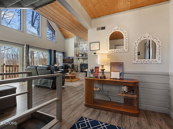 Excellent opportunity to own a fully furnished turnkey cabin in the highly desirable Wears Valley area, just minutes from Pigeon Forge, Gatlinburg, and the Great Smoky Mountains National Park. This 2 bedroom cabin with a loft and 3 full bathrooms offers great winter mountain views. The living room features cathedral ceilings, creating a bright, open feel that enhances the cabin's mountain appeal. The property features wrap around decks plus a private deck off of the loft bedroom, providing multiple outdoor spaces for guests to enjoy. The loft bathroom includes a large jacuzzi tub, a popular amenity for overnight rentals. Interior highlights include two gas fireplaces, one in the living room and one in the downstairs bedroom and a walk out basement with two bedrooms located on the lower level, allowing for flexible sleeping arrangements and increased occupancy potential. Recent upgrades includes new LVP flooring throughout, new kitchen countertops, new sink and the roof is just a few years old, new outside staining and painting, helping minimizing near term capital expenses. The cabin sits on a wooded lot offering exceptional privacy, along with a carport and exterior storage. Being sold fully furnished, this property is ready for immediate use as a short term rental or private mountain retreat. Strong location, updates, privacy, and guest focused amenities make this an ideal investment property in the Smoky Mountains.
