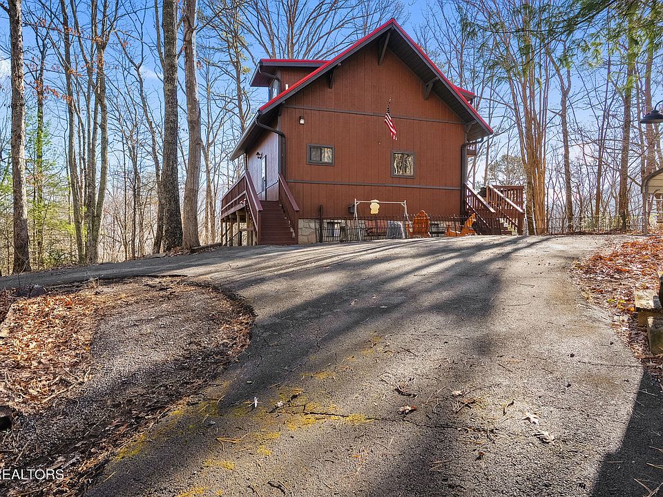Excellent opportunity to own a fully furnished turnkey cabin in the highly desirable Wears Valley area, just minutes from Pigeon Forge, Gatlinburg, and the Great Smoky Mountains National Park. This 2 bedroom cabin with a loft and 3 full bathrooms offers great winter mountain views. The living room features cathedral ceilings, creating a bright, open feel that enhances the cabin's mountain appeal. The property features wrap around decks plus a private deck off of the loft bedroom, providing multiple outdoor spaces for guests to enjoy. The loft bathroom includes a large jacuzzi tub, a popular amenity for overnight rentals. Interior highlights include two gas fireplaces, one in the living room and one in the downstairs bedroom and a walk out basement with two bedrooms located on the lower level, allowing for flexible sleeping arrangements and increased occupancy potential. Recent upgrades includes new LVP flooring throughout, new kitchen countertops, new sink and the roof is just a few years old, new outside staining and painting, helping minimizing near term capital expenses. The cabin sits on a wooded lot offering exceptional privacy, along with a carport and exterior storage. Being sold fully furnished, this property is ready for immediate use as a short term rental or private mountain retreat. Strong location, updates, privacy, and guest focused amenities make this an ideal investment property in the Smoky Mountains. Projections from Airdna $57,000.
