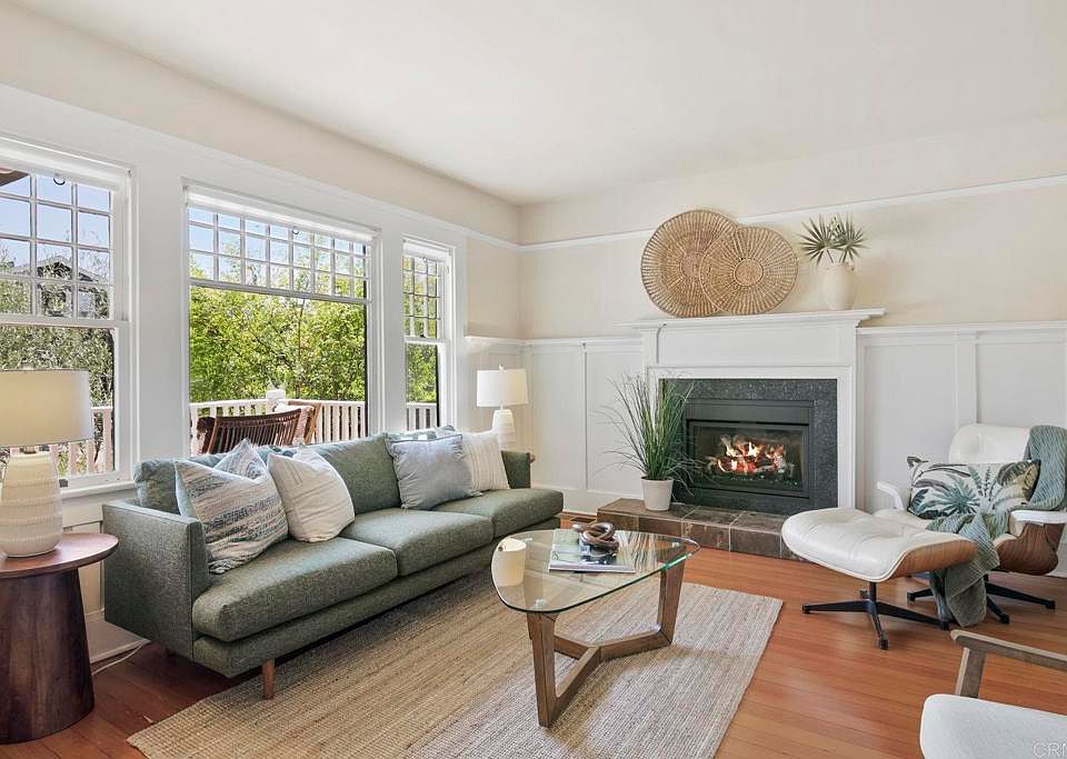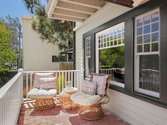 Balance neighborhood connection with a true sense of privacy in this North Mission Hills Craftsman. Set on a charming street just blocks from the West Lewis and Goldfinch commercial districts, this modernized home offers owned solar, a 200-amp electrical panel, NEMA 450 outlet for EV charging capability, updated HVAC, a reinforced foundation with updated drainage, and new roofs, all while preserving the character of its 1912 origins with a full-length front porch, double-hung windows, picture molding, paneled walls, and original wood floors. To the left of the formal entry is the light-filled living room, complete with a rebuilt fireplace and paneled walls. Through the glass french door, you’ll find a reading room or office that connects to a vintage full bathroom with claw-foot tub and hexagon tile floor. To the right of the entry, the dining room is highlighted by paneled walls, built-in shelving, drawers, and bench seating with storage, and opens to a modern eat-in kitchen with 2 pantries, quartz counters and island. Visible and accessible from the kitchen, the backyard is the highlight of this property. A private, oversized sanctuary framed by a mature pine hedge, features raised garden beds, a grassy play area, and a pergola for outdoor dining. Spending time here will truly become an extension of daily life. A detached 10' x 12' structure offers flexibility as an office, gym, or studio, while the 2-car garage with alley access adds convenience and future development potential. Upstairs, two large bedrooms each open through double French doors to private balconies and include extra-large walk-in closets. The versatile bathroom configuration allows for a primary ensuite or a shared bath without sacrificing privacy. Come experience this home for yourself and see why Mission Hills is one of San Diego County’s most coveted historic neighborhoods, with easy access to the airport, downtown, Coronado, beaches, and top universities.