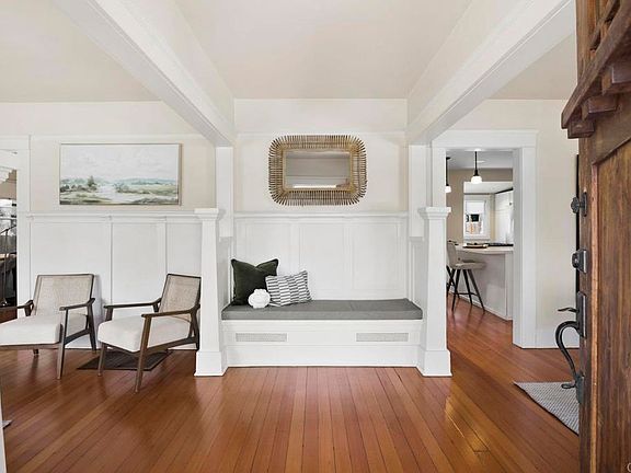 Rebuilt fireplaceFull-length front porchPrivate balconiesHexagon tile floorPaneled wallsQuartz countersPergola for outdoor dining
