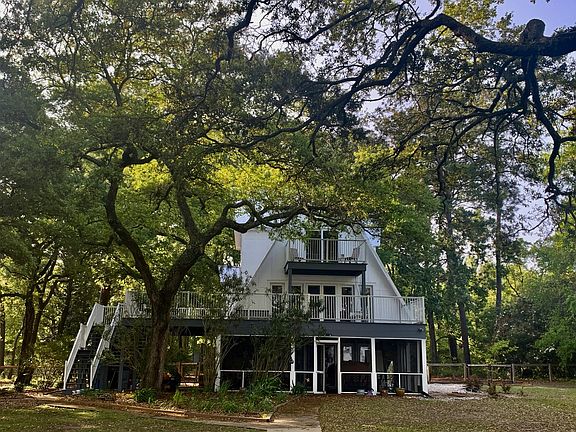 GAFIA Legacy is more than a home; it's a lifestyle, embodying ''Getting Away From It All'' at 4112 Legacy. The vistas here are among Yonges Island and Meggett's finest, presenting a living canvas of unspoiled beauty. A haven where the ocean breeze and Spanish Moss draped Grand Oak trees ushers you into coastal tranquility.The architecture of this custom home elegantly frames its surroundings, with expansive wrap around and screened porches providing serene spots to indulge in the area's scenic charm. Nestled on a generous 156 ft of waterfront and over an acre of land this home has been recently updated to enhance its charm and functionality. Featuring 5 bedrooms, 3 bathrooms, 2 living areas, new siding, new metal roof, gleaming wood floors, renovated bathrooms and an eat-in kitchen with granite countertops. The Primary bedroom is on the third level and has its own private balcony overlooking the waterways. Your own dock is on a short protective tributary that serves as a gateway to Charleston's coastlines and creeks leading to the Wadmalaw Sound/ ICWW. Morning or evening, the property affords a rare spectacle: the dance of celestial lights in sunrises and sunsets, mirrored by the moon, all observable in a serene, spiritual display of nature's grandeur. The ebb and flow of the tide bring nature's ballet to your backyard, with bottlenose dolphins strand feeding (a phenomenon and unique feeding habit only known to dolphins in SC and NC) and seabirds among the frequent performers in this idyllic setting. If you are lucky you might catch a Mink family swim by or with you. Swim, paddle board, kayak, fish, shrimp and crab all from your own backyard! Located just a short walk from Meggett County Park,"GAFIA Legacy" offers the perfect balance of secluded living and accessibility to Charleston and Edisto Beach. And for a touch of local charm, anticipate friendly greeting from the neighborhood's beloved dromedary Camel as a reminder of the unique and special character of this community. Welcome to your coastal Legacy, a place where every moment is a treasure and every view a masterpiece! No flood insurance is required. No HOA.