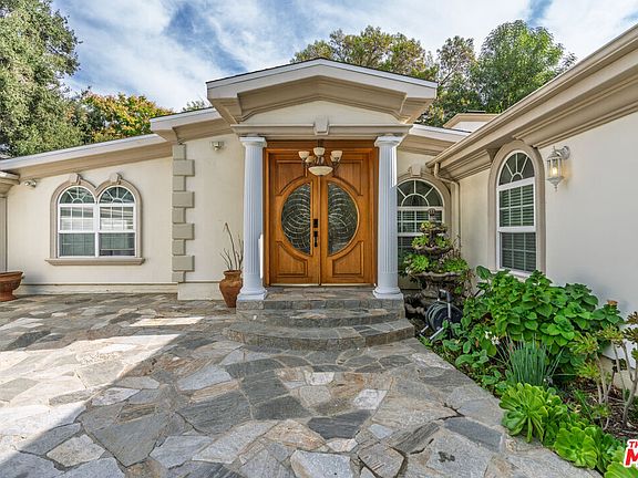 Beautiful single-story pool home in one of Calabasas' most desirable neighborhoods within the Las Virgenes Unified School District. The main house offers 3,976 sq ft of living space with 4 spacious bedrooms and 3.5 baths, featuring travertine flooring, vaulted ceilings, and a chef's kitchen with granite countertops, a 60" Wolf dual-oven range, and built-in refrigerator. Recent upgrades include 34 fully paid-off solar panels and a new roof (2022). A separate ADU/guest house with its own address, parking, EV charger, kitchen, and laundry provides excellent flexibility for guests or rental income. The property sits on a 13,000+ sq ft lot with a circular driveway, multiple EV chargers, lush green space, fruit trees, and an entertainer's backyard complete with a sparkling pool/spa, fire pit, and seating area. Close to top-rated schools, freeway access, shopping, and dining.