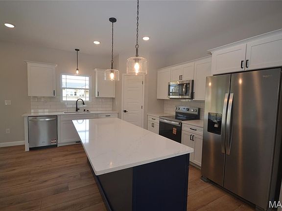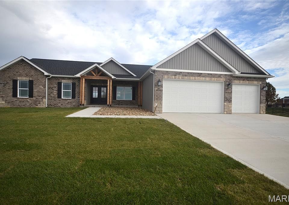 Welcome to this stunning new construction home in the desirable Wildwood West Estates subdivision. This Craftsman-style ranch sits on a level lot and features a spacious covered front porch perfect for enjoying beautiful sunsets. Step inside to an open floor plan that seamlessly connects the dining room, great room, and kitchen. The dining room overlooks the front yard, while the gorgeous kitchen boasts white cabinetry, a stylish backsplash, and a large center island with gold handles and extra storage. All appliances-including the refrigerator - are included. The great room is the heart of the home, featuring a cozy fireplace with wiring ready for your TV above. Expansive patio doors lead to a covered back patio with a ceiling fan, ideal for outdoor relaxation. A pair of barn doors opens to a versatile space- perfect for an office, craft room, or playroom. Throughout these main living areas, you'll find luxury vinyl plank flooring for durability and style. This home offers a split bedroom plan with two spacious bedrooms and a full bath plus a luxurious primary suite with a large bedroom, TV hookup, and spa-like bath featuring dual vanities, a water closet, separate shower, and a stunning soaking tub. This suite also includes a generous walk-in closet. Conveniently located near the three-car garage, you'll find a hallway drop zone and a separate laundry room with washer/dryer hook-ups, utility sink, and shelving. The full unfinished basement provides endless possibilities, including a room with an egress window for an addition bedroom, plus plumed for a future bath. All city utilities plus the peacefulness of living in the country and enjoying the wildlife. Smithton/Freeburg school district. Note: Many of the rooms have been virtually staged.