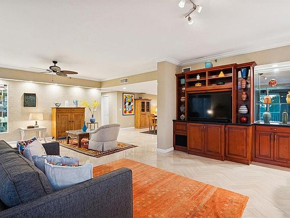 Experience resort-style living in this rare Corner Seville model offering 2,532 sq. ft. of gracious living space. This bright, beautifully remodeled 4th-floor condo features soaring 9-ft. ceilings, floor-to-ceiling IMPACT GLASS windows, and two enclosed terraces including a stunning Florida room with sweeping views of the Cypress Golf Course.