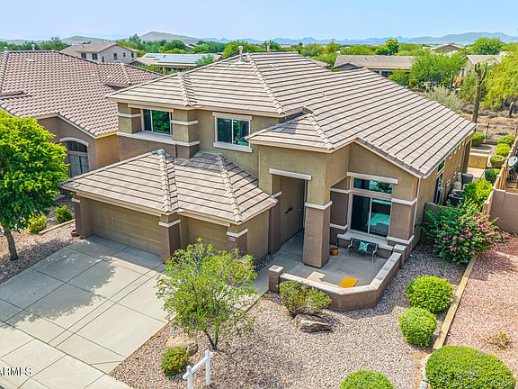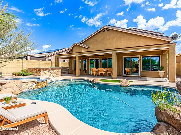 Welcome to this beautifully updated home in Anthem Parkside featuring 4 bedrooms and 3 bathrooms. The main-floor primary suite offers comfort and convenience, while the open floor plan is enhanced with travertine floors, granite counters, and fresh interior paint. Energy-efficient upgrades include owned 9KW solar and brand-new dual-pane tinted windows & new back patio sliders. The backyard is an entertainer's dream with a covered patio electric shades, misting system, sparkling pool, relaxing spa,Bar/ BBQ, gas fire pit and no neighbors behind—just peaceful common area views. Additional highlights include an epoxied garage floor and prime location just 10 minutes from I-17, with Anthem's renowned Parkside community amenities,sidewalks, parks, pools, fitness, & more—right at your fingertips