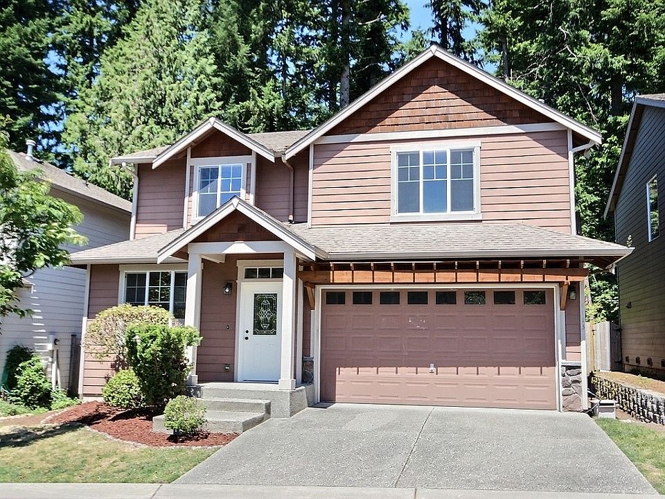Enjoy this gorgeous (originally model home) 3 bedroom + Bonus (that can be converted into bedroom) and 2.5 bathroom home for rent. This home has easy access to east side and Seattle for commuters and has top rated schools. - 2247 sq. ft. home with 2 car garage - Upgrades on first floor - Hardwood floors, upgraded carpet in living area, fireplace, granite counter tops, backsplash, all stainless steel appliances which includes brand NEW REFRIGERATOR & GAS RANGE - Laundry on upper level with new Washer & Dryer - Double door master suite upstairs with 5 piece bath and walk-in closet - Backs to green belt offering privacy - Move in ready - Rent of $2100 per month, 12 month minimum lease + 1 month rent as security deposit.- For pets, we will need additional security deposit and pet rent that can be decided on meeting.