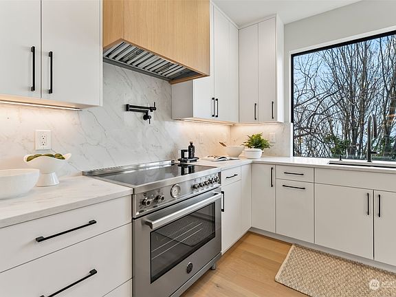 Experience elevated luxury and modern sophistication in this stunning 5-bed, 3.75-bath brand new smart home. With panoramic westerly views of Puget Sound and the Olympic Mountains, this home invites you to enjoy the scenery from every level, including multiple decks and a rooftop oasis. The open chef's custom kitchen and heated tile floors in all baths offer everyday comfort. The lower level features a custom-designed sauna and wet bar. The spa-like master suite boasts vaulted ceilings, walk-in closet, and a 5-piece bath. Smart home features include indoor/outdoor multi-zone surround sound, WiFi access points, Enhanced security throughout, and more. Walking distance to Alki’s vibrant dining & shopping scene. Elegant. Tranquil. Exceptional.
