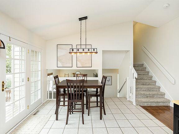 Tons of living space in this 5-level split! White trim throughout. The main floor features vaulted ceilings with natural light and brand-new LVP flooring throughout the main living areas. Front living room flows into the spacious, eat-in kitchen with sliders to the deck that overlooks the fenced yard. The kitchen also overlooks yet another living room with fireplace. Upstairs, 3 Large bedrooms and another full bath, including a main bedroom ensuite. Downstairs, another big play room or "theater room" with a big screen and projector. Lowest level has plenty of storage and room for a workout area or hobby room. The fenced backyard has a storage shed and cozy fire pit area. Two-car attached garage adds convenience. Roof was replaced 2021. Great layout, great light, and lots of entertaining space!
