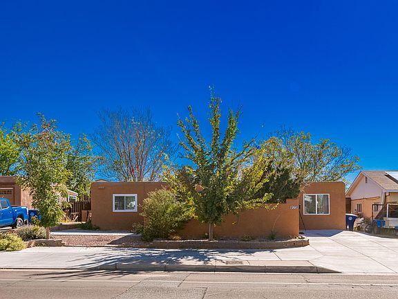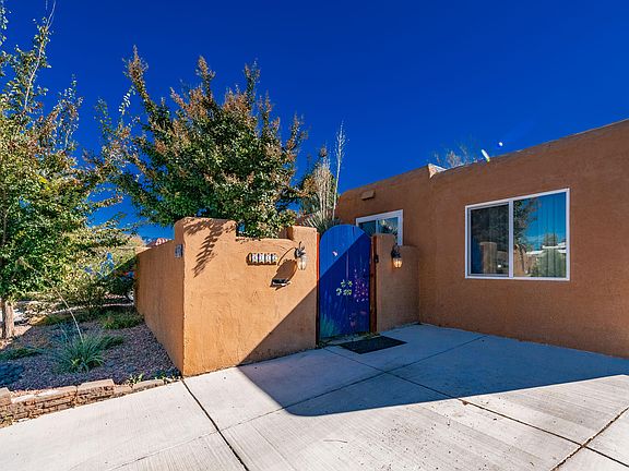 Welcome to this charming three-bedroom, two-bathroom home in the heart of Albuquerque! Enjoy the spacious layout with three living areas and a cozy fireplace. The remodeled kitchen, newer granite countertops, and modern tile flooring, add comfort and style. Brand new Master Cool A/C, newer windows and doors Outdoors, relax in the large backyard featuring a covered patio, large storage shed, grassy area, garden, and chicken coop for fresh eggs. Cherry, plum, peach and pomegranate fruit trees! The welcoming courtyard and ample parking add convenience, Don't miss this delightful oasis and urban farm.