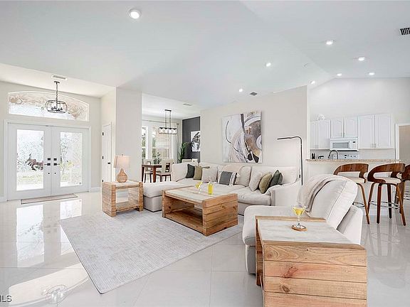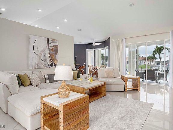 This Home is a three bedroom and 2 bathroom Villa situated in the highly desirable SW Cape Coral, close to restaurants and entertainment. The property features a split floorplan with the primary bedroom with en-suite bathroom is located on the right side of the home. The center is comprised of a spacious living room with plenty of natural light and large sliding glass doors that open up to the large under truss lanai. The left side of the home features 2 bedrooms that share one bathroom. The guest bathroom also serves as a pool bathroom, which is convenient when entertaining guests.