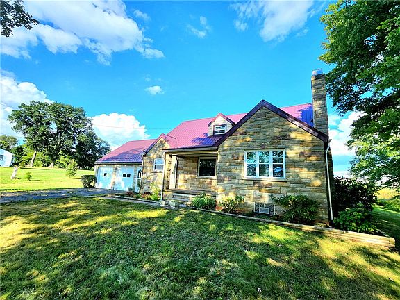 Stunning sandstone home in South Pymatuning Twp with 3 large bedrooms and 2 and a half bathrooms on a little over 2 acres of land! In addition to a 2 car attached garage there is a 42x36 additional detached garage on the property! Beautiful hardwood floors refinished throughout the home, newer vinyl windows, newer metal roof on home, detached garage, and shed. The large basement is equip with a full kitchen, while still having space for storage/game room/etc. There is newer furnace, A/C, and sump pump. This home just needs your finishing touches! All appliances included but not warranted, room sizes approximate, lot size per Realist.