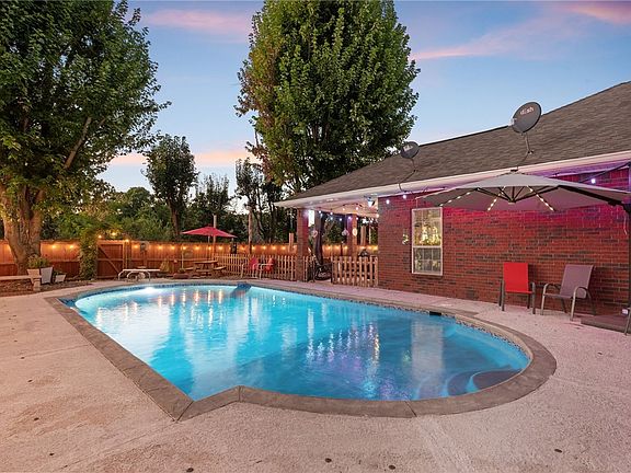 The lot goes beyond privacy fence. Pool is gunite, resurfaced 2024, new salt cell, sand filter and pump 2024 end of season heater on pool is three years old and used one season. Seller can't remember if it's 8 or 9 ft deep.
