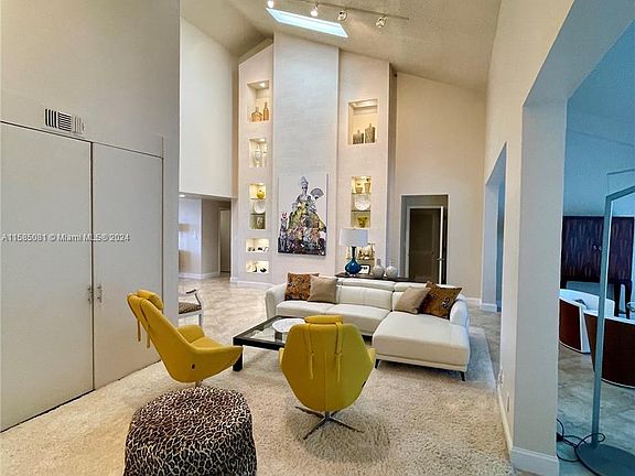 Gorgeous and rarely available penthouse unit with vaulted ceilings. This building has the best view in the complex with a long and wide golf view. Two units per floor share a private lobby, updated kitchen, AC system from 2016, 3 enclosed terraces including the huge Florida room, office off the guest bedroom and area adjacent to the kitchen and dining room. Gated entrance with guard on site. Covered parking in your own carport spot. Private clubhouse with fitness center and heated pool. Pet friendly. Private, Full-size washer/dryer in the unit with plenty of additional storage space. Maintenance also includes cable w/HBO, internet. Pet friendly for 1 cat or dog under 30lbs. Dining room Chandelier is excluded. Association requires a 20% escrow deposit in contract and 720 credit score.