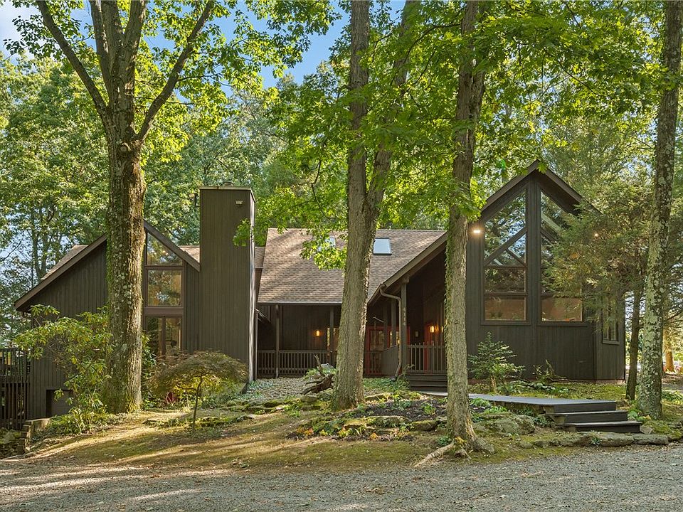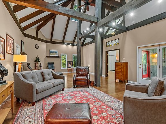 Welcome to 4114 Windfall Lane – a private 5-acre retreat in Pine Richland! Surrounded by scenic mature hardwoods, this timeless post-and-beam home features soaring 22-ft ceilings, walls of windows, and many skylights for dazzling natural light throughout the open living spaces. The chef’s kitchen offers custom cabinetry, Corian counters, and stainless appliances, while the spacious first-floor primary bedroom showcases dramatic vaulted ceilings. Upstairs includes two bedrooms plus a loft overlooking the gorgeous great room.