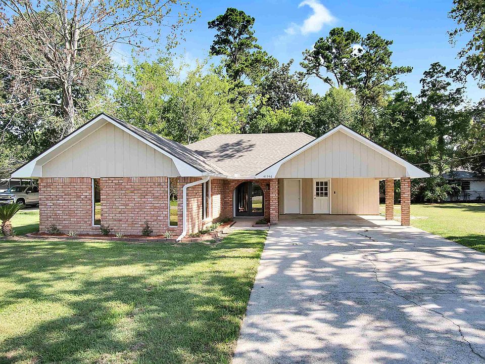 Totally renovated home with New Roof, new A/C & Heat, new ceramic floors throughout, new granite counter tops, new appliances, new light fixtures, mirrors, freshly painted inside and out. This nice home has a corner wood burning fireplace, built in bookcase, large laundry room, Cathedral ceiling in Primary Suite, Large custom shower in Primary Bath and so much more. The freshly landscaped lot size is 100 x 125 and did not flood in 2016 and does not require flood insurance. NO HOA fees here. Check out this great buy soon it will be gone.