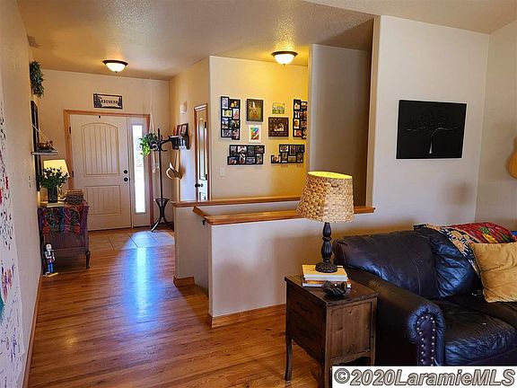 Cozy and well- maintained home in the highly desirable Grand View Heights neighborhood and within walking distance of Laramie High School. This neighborhood has trails that are great for walking, biking, or kids to gather and play. Plenty of windows letting in the sunshine and a spacious deck overlooking a raised bed garden. Gas fireplace, stainless steel appliances, walk-in pantry, his and her walk-in closets. New roof 2016. Central air added in 2021. Upstairs has living room, kitchen, laundry room, master, and 2 other bedrooms. Completely finished basement has 2 additional bedrooms, large bathroom, and grand multi-flex space that could be used as a game room, homeschool room, or has a set-up to be a home movie theater!