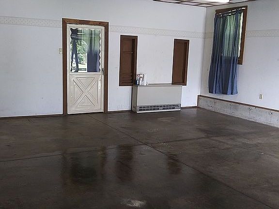 Home sets on just over an acre. Brick front the rest is t11. 24x36 heated garage with 2 7x9 doors with openers 24x12 storage rooms on back. Blacktop driveway with turn around. Nice yard with big trees and gazebo in back. Approx 2.5 miles from I64 and major stores 1.7 miles from hospital. Ac window units and electric baseboard heat. 3 interior doors need repairs and broken window in garage.