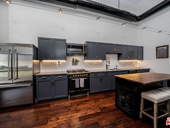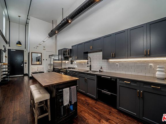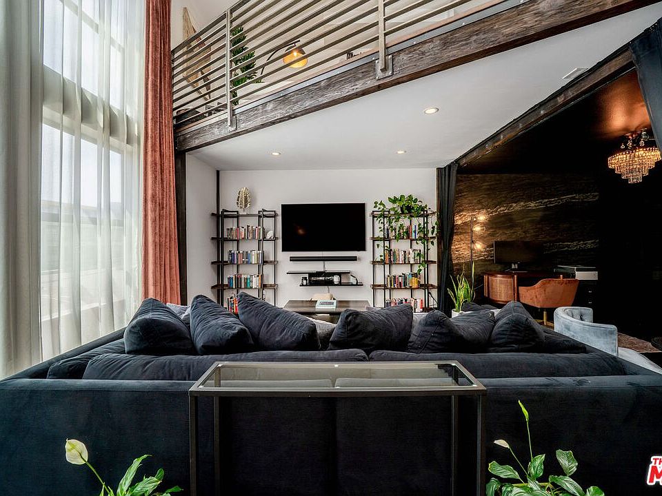 If you enjoy loft living, welcome to this stunning, remodeled top-floor loft, a true entertainer's dream tucked into the Marina's most dynamic and creative streets. Thoughtfully curated with high-end finishes and smart design, this condo blends dramatic architecture with modern comfort. Soaring 17+ foot ceilings and a wall of floor-to-ceiling windows flood the space with natural light, framed by a custom motorized drapery that adds a bold designer touch. The open-concept layout includes a custom speakeasy-style bar, perfect for unwinding after a long day or kicking off an evening of entertainment or relaxation. The kitchen is a showpiece, featuring quartz countertops and a suite of top-tier appliances including a Viking Pro refrigerator, Ilve range, and Fisher & Paykel dishwasher. Both bathrooms are elevated with copper sinks, marble counters, custom-tiled showers, smart mirror lighting, and Toto bidet toilets. A private guest bedroom with en-suite bath is located on the main level, while the upstairs mezzanine hosts a spacious primary suite with a walk-in closet, room for a home office, and serene architectural views. Additional highlights include new HVAC 2024, custom cabinetry and doors, upgraded lighting, EV charging, guest parking, and a rooftop deck with city views.