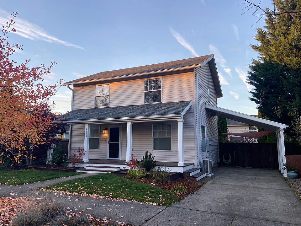 Beautifully appointed 3 BD + 1.5 BA home! Designer fixtures and finishes throughout including bamboo hardwood flooring/LVT, quartz countertops, large farmhouse kitchen sink, modern stainless steal appliances including a stacked washer and dryer, and high efficiency zonal heating and cooling. Enjoy the easy living floor plan with living, dining, kitchen and half bath on the main floor while being able to retreat upstairs to the 3 bedrooms, each with ample closet space and the full bath which includes a subway tiled shower. Step outside year around to the fully covered front porch or entertain in the spacious, fully fenced backyard that boasts raised garden beds as well as a deck, patio, and secure shed + lean-to for storing your gear. Off street parking for 2 vehicles, one of which will be protected by a beautiful carport.