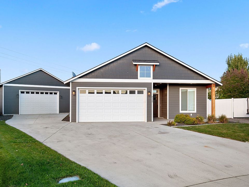 Beautiful single level 3 bed, 2 bath home with all the bells and whistles. Great Post Falls location conveniently located close to Downtown CDA and Spokane. Open floor plan, Quarts counter tops through out, LVP flooring with carpet in the bedrooms, the Nest thermostat, gas forced air heat, central air, upgraded appliances, gas range, beautiful master bedroom suite with dual vanities. Fully fenced and landscaped yard with auto sprinkler system, 2 car attached garage and 28X36 shop, covered porch and back deck. Home was built in 2021, photos show yard before the beautiful landscape grew in.