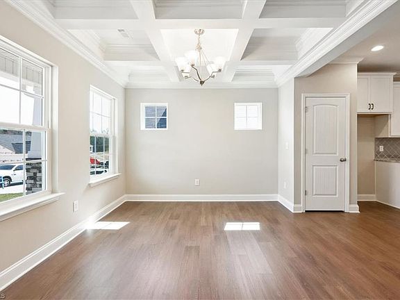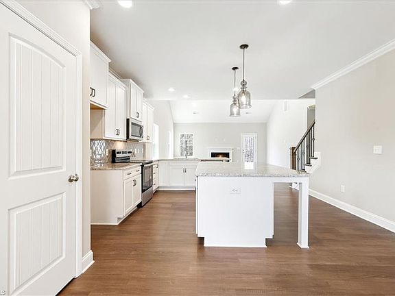 This community offers convenience and tranquility. Private rear views. The Richmond model features elegant stone columns and a covered front porch. The main floor offers a great room with vaulted ceilings, primary suite, a formal dining room with a coffered ceiling, a spacious foyer, a kitchen with ample cabinetry and a large pantry, and an oversized 2-car garage. Upstairs are generously sized secondary bedrooms with walk-in closets and a large loft area that overlooks the great room. The home features luxury vinyl planks on the main floor, quartz countertops in the bathrooms, carpeted bedrooms and hallway, hardwood stairs, and granite in the kitchen. Call for monthly promotion and incentives when using preferred lender, attorney, and title company. Don't miss out on this opportunity at Canter Creek!