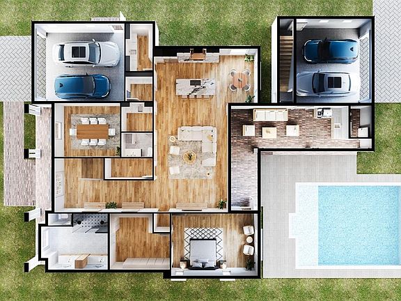 Oversized islandCovered lanaiExpansive windowsLarge bonus roomQuartz countertopsFull summer kitchenDedicated pool bath