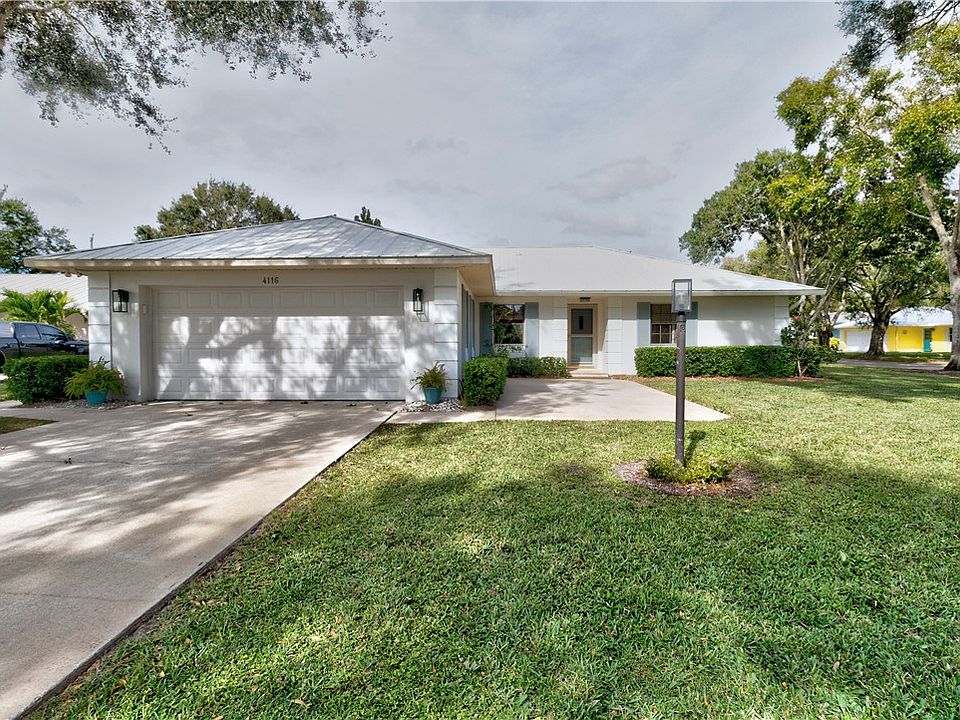 Metal roofCorner lotVinyl flooringMetal storm shuttersUpgraded sprinkler systemTravertine patio