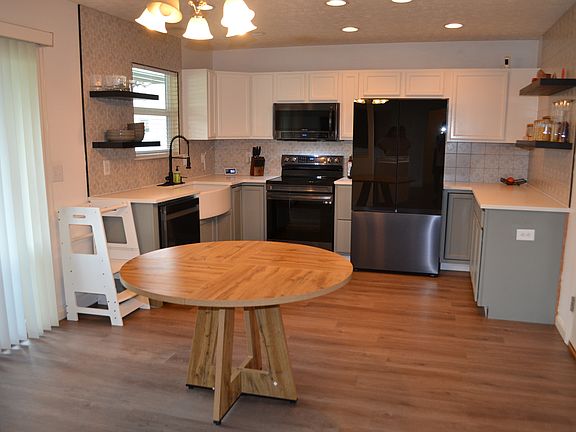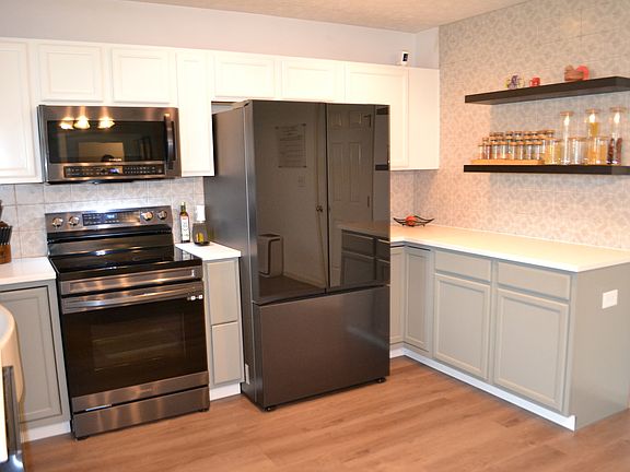Modern updated 3 bedroom ranch. It is ready for you to only have to move your furniture in and call it home. This ranch offers a large living room and foyer, with vaulted ceilings. New luxury vinyl flooring, fresh paint, updated beautiful kitchen, new gorgeous backsplash, quartz countertops, new stainless appliances. Spacious eat-in kitchen. Open floor plan is wonderful for entertaining. Sliding glass doors walk out to a covered back patio, vinyl fenced in backyard and a shed. Mature trees. Master suite offers vaulted ceiling, lots of space, walk-in custom closet, full bathroom with step-in shower and two seats. Large laundry room. Water softener, 2 car garage. Subdivision offers a wonderful park to walk in, playground, and shelter. New lighting. Updated hall full bath. House is immaculate! Ring doorbell does not stay. This Southside property is lovely and it's conveniently located to schools, shopping and restaurants.