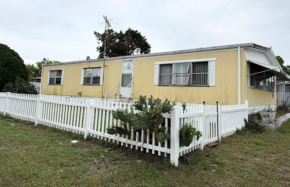 Spacious lovely double wide mobile home with pride of ownership. NO HOA. NO LOT RENT. This 2-bed, 2-bath, 1,152 SqFt home sits on a 0.12 acres lot in a quiet neighborhood, offering comfort and convenience. Step into a bright, open living space filled with natural light from large windows, perfect for relaxing or entertaining. The primary bedroom features a walk-in closet and private en-suite bath, the second bedroom is generously sized for guests or family. A spacious enclosed porch adds versatile living space, ideal for a home office, extra storage, or a cozy entertainment area. Enjoy the oversized fenced backyard with fruit trees and plenty of room for outdoor activities. Centrally located near shopping, dining, golf, fishing, parks, beaches, and hospitals. Whether you're looking for a full-time residence or a smart investment, this home has it all. Schedule your showing today!