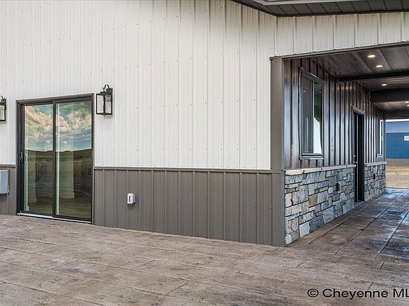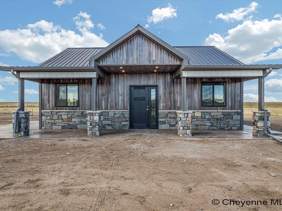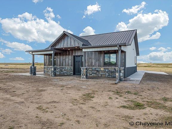 Move in ready now! Come fall in love with this immaculate two bedroom, two bath home that invites from the moment you step foot on the stamped and covered patio, perfect for taking in the sweeping views, with a custom railroad tie stamp that adds charm and depth, as well as outdoor living space, perfect for a little R&R or entertaining. Inviting family room flows easily into a generous kitchen- with ample countertops and upgraded appliances- maintaining a flowing an open concept, while the custom touch of a barn door gives privacy to the bedroom spaces. Oversize two car garage, upgraded radiant floor heat, upgraded woodgrain steel siding, all on 5 acres located just 20 minutes east of Cheyenne!!! Easy to show!!!Embrace peaceful country living in this carefree home on 5.25 peaceful rolling acres east of Cheyenne about 20 minutes - offering the perfect balance of privacy and convenience. Upgrades include: in-floor radiant heat, Quartz counter tops, soft close cabinets, mini-split A/C unit for year round comfort, and hybrid insulation to keep utility costs low.