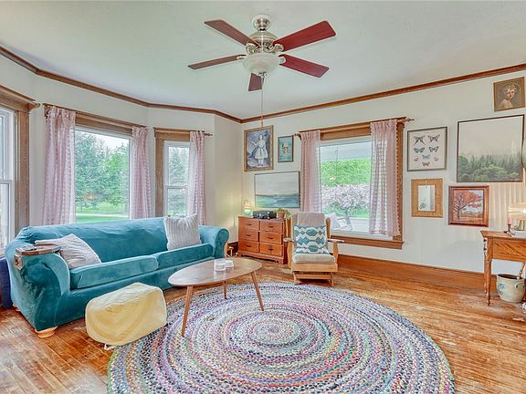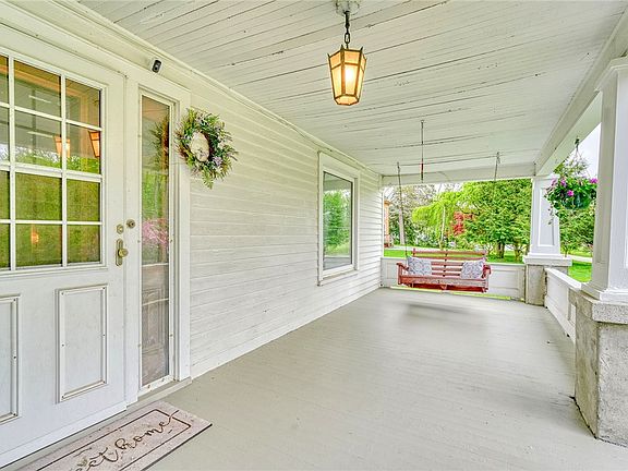 COUNTRY CHARM & ROOM TO ROAM! SPACIOUS and FULL OF CHARACTER! Country living on OVER TWO ACRES backing to Wolcott Creek! WOODED TRAILS to roam, PERENNIAL GARDENS and a LARGE BARN! A wide COUNTRY-SIZE FRONT PORCH welcomes you, while a massive ENCLOSED SIDE PORCH and a SUN-FILLED 2ND FLOOR SUNROOM off the primary bedroom offer peaceful spaces with NATURAL LIGHT ALL DAY.*NONE of which are included in the 2800+SQUARE FEET! The layout offers GENEROUS ROOM SIZES with much of the ORIGINAL WOODWORK beautifully maintained! FLEXIBLE LIVING SPACES throughout. Inside, the EXTRA LARGE EAT-IN KITCHEN is truly the heart of the home—featuring NEW FLOORING (2025), A HUGE ISLAND, built-in pantry cabinets, a brick hearth, and WOOD BURNING STOVE-FIREPLACE! *FIRST FLOOR LAUNDRY! (washer/dryer new '22) *FORMAL DINING & LIVING! *POSSIBLE ADD'L BEDROOM! (See floorplans in photos!) Thoughtful UPDATES include: STEEL ROOF, NEW SUNPORCH ROOF ('24), MOSTLY NEWER WINDOWS, UPDATED FURNACE ('11), ON-DEMAND HOT WATER HEATER ('19), UPDATED ELECTRIC RISER CABLE & NEW PANEL BOX ('20), MOST KNOB & TUBE REMOVED, RADON MITIGATION SYSTEM ('20), NEW SEPTIC SYSTEM ('20), and FRESH EXTERIOR PAINT! REFRESHED BATHROOMS! ABOVE-GROUND POOL (2021) enjoys FULL SUN for much of the summer! Two CAMPER OUTLETS already in place. Once the homestead of the local sheriff, this property blends history with a nature-rich setting that’s just far enough away to enjoy true country living.**ENJOY WHAT THE AREA HAS TO OFFER—just minutes to Huckleberry Swamp, Marshall Park, Sodus Bay, Chimney Bluffs State Park, and Del Lago Casino. Walk to live music at the local park in the summer, and enjoy easy access to Wegmans (Newark), Aldi (Lyons), Save-A-Lot (Wolcott), and Instacart delivery. Only 25 minutes to the Outlet Mall and 17 minutes to the NYS Thruway (Waterloo Exit).**DELAYED NEGOTIATIONS** Through Wednesday 5/21 @ 1pm