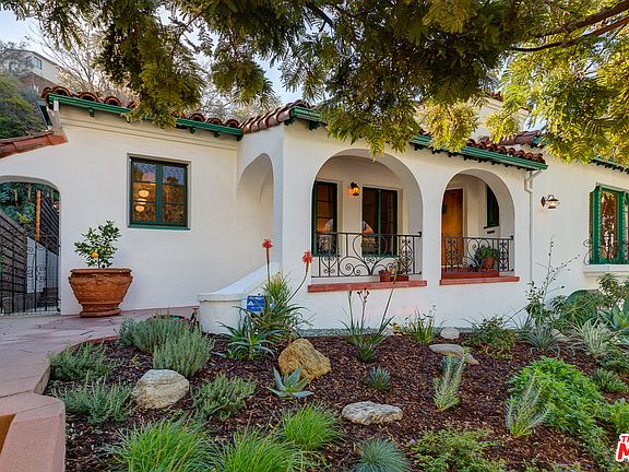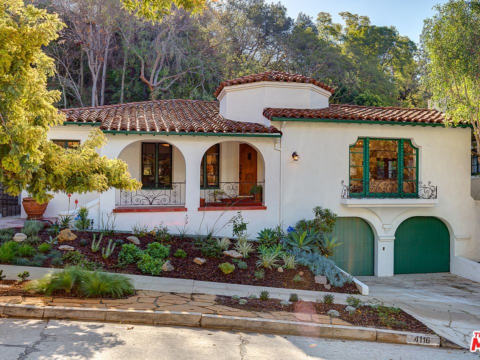 Set above the road near the end of a cul-de-sac, Dundee Drive is a coveted street which feels far removed from the hustle and bustle of most LA suburbs. Surrounded by significantly larger multi-million dollar homes, 4116 Dundee hearkens back to an early California lifestyle, but offers up system upgrades and character. The covered loggia leads to an entry foyer with original magnesite flooring. The step down living room boasts high ceilings, original windows and doors and centers on the gas fireplace. Hardwood floors run throughout this 3-bedroom, 2-bath home, which measures approx. 1,840 sq.ft. The dining room opens directly to the fully remodeled kitchen and breakfast area. Pocket doors separate these areas if so desired. The vintage inspired kitchen remodel includes rare stone counters, stainless appliances, custom deco-styled cabinets and designer decorative touches. The spacious master bedroom offers a built-in dressing area with vintage tile and make up mirror. A door to the rear gardens and wrap-around deck provides easy access to the yard. The dramatic master bathroom includes highly decorative vintage tiling in impeccable condition, a separate upgraded shower stall and a separate vintage soaking tub. A second bathroom provides similar drama in a slightly more modest size. A garage with 2 bays and automatic doors is at street level and measures in excess of 550 sq.ft. This exciting turnkey home has been seismically retrofitted, offers newer wiring, copper plumbing and other significant improvements. The back gardens provide multiple seating areas and pathways leading to a hillside observation deck.