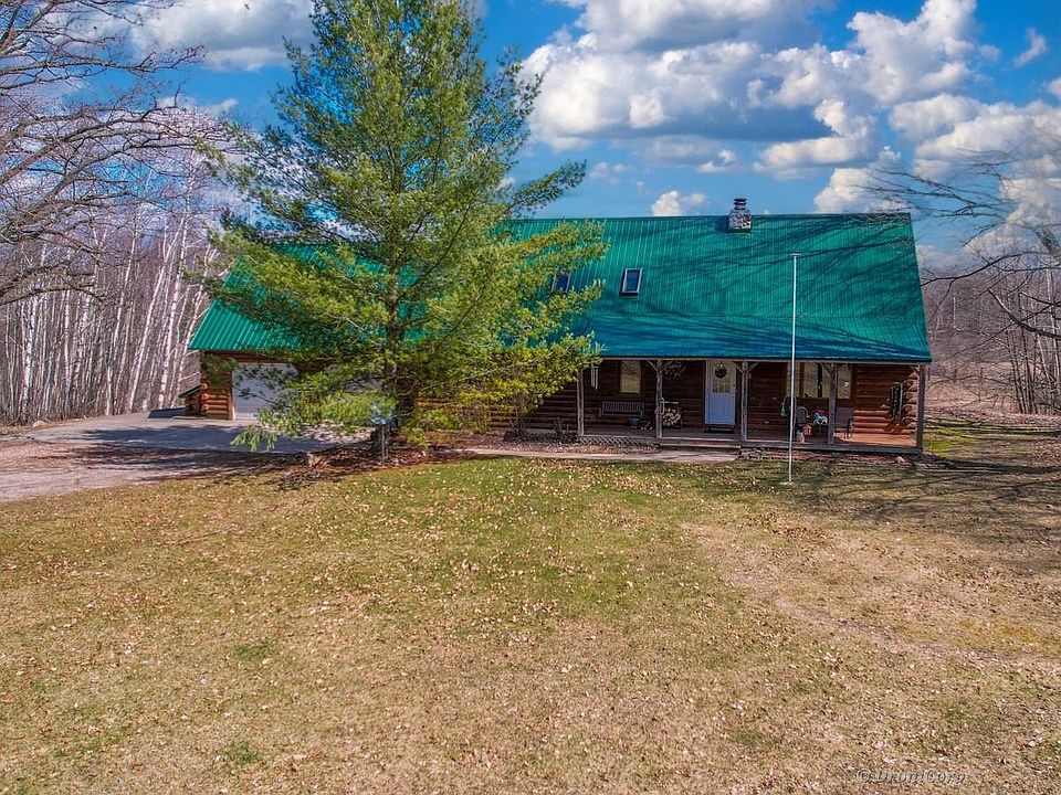 Beautiful Russell Log Home on 47+ rolling acres. Enjoy up north living at it's best! This beautiful property offers rolling hills, a small orchard, pond, two established pastures, 30x50 barn w/4 stalls with an attached 20x40 lean-to, some woods and lots of rolling open land. Step into the large log home, featuring a towering stone fireplace, polished plank wood floors, vaulted ceilings, large country kitchen & a extra large dining area. Enjoy the extra large master suite with a large private bath & walk-in closet. There is also a large open loft that's used for extra sleeping space or a play area for children. This energy efficient home has hot water baseboard heat mini-splits. The lower walkout offers a finished living area, nice craft room and a 3/4 bath. This home has a newer steel roof that was put on in 2019, newer oversized paver patio and landscaping, updated kitchen and more! The property is approx 3/4 open land with lots of hills. Great hunting and located close to 100's of acres of state land. Also near miles & miles of snowmobile trails. Take a FLY THRU DRONE TOUR: http://tinyurl.com/4116dutcher