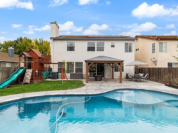 Welcome to this beautifully maintained North Modesto gem, lovingly cared for by the same owners for 17 years. This 4-bedroom, 2.5-bath home has been thoughtfully updated inside and out. The interior features fresh paint, modern finishes, and an inviting layout perfect for family living and entertaining. The kitchen shines with granite countertops, stainless steel appliances, and a nearly new dishwasher. The remodeled downstairs powder bath adds a stylish touch. Step outside to your private backyard oasis complete with a solar-heated pool, spacious gazebo with outdoor TV, blue tooth sound System, BBQ and dining area, and a play structure for kids. Every detail has been meticulously cared for, creating a home filled with warmth and memories. Just minutes from Hwy 99, Kaiser Hospital, and shopping centers, plus an easy stroll to Mary Lou Dieterich and McKinney Connolly Park, this rare find offers the perfect blend of comfort, community, and convenience.